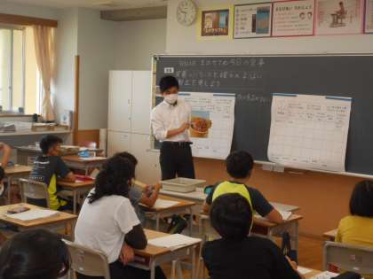 9月22日(水)、教育実習の先生の公開授業がありました。よりよい献立にするために、栄養のバランスを考えることや、彩りや旬について考えることも大切だと分かりました。