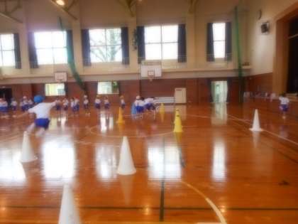 体育館をぐるぐると回りながら、走ってジャンプしたり、腕を大きく振って両足ジャンプしたり、素早くジャンプしたりと、思い切り体を動かす子供の姿が見られました。