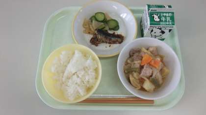 9月24日(金)の給食 公開日 2021/09/24 更新日 2021/09/24 給食室 本日の献立は、ごはん、いわしの土佐煮、華風和え、豚肉とじゃがいものうま煮、牛乳 です。 豚肉はもも肉を使用しました。柔らかくて食べやすかったです。