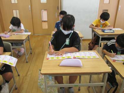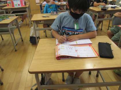 今日の書写の時間は、「姿勢」を意識して漢字練習をしました。正しい姿勢で書くと、自然と「美文字」になりましたね。集中して取り組んでいました。