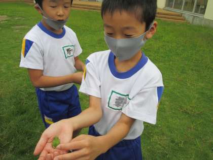 9月29日(火)、今日の生活科では生きものさがしをしました。新しい虫を見付けたときには自然とみんなで集まって観察していました。休み時間はいつも大半の子がサッカーをしている2年生ですが、今日はみんな生きものさがしに夢中でした。