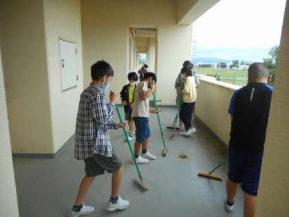 ベランダ掃除(飼育栽培・環境委員会) 公開日 2021/10/06 更新日 2021/10/06 6年生 10月6日(水)、委員会の時間に飼育栽培・環境委員会の子供たちがベランダを掃除してくれました。普段はあまり掃除ができていない場所を、高学年としてがんばってきれいにしてくれました。