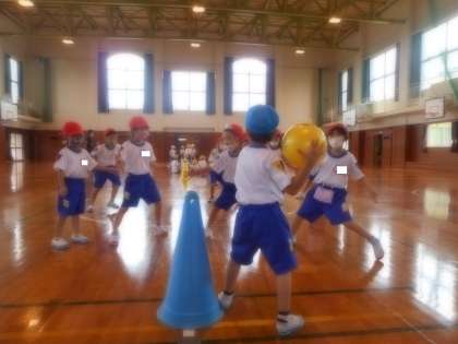 10月6日(水)3時間目、体育科の学習で、四角にベースを置いたボールゲームをしました。