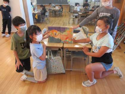 10月14日(木)、国語科「はんで意見をまとめよう」の学習では、1年生が本を好きになってくれるような読み聞かせをしようという目的のもと、司会者や記録、時間係の役割を設けて、班で話し合いを重ねてきました。まだまだ慣れない子供たちですが、友達の意見に賛成する意見を述べる子供や、自分の意見に理由をつけて述べようとする子供、司会者として意見をまとめようとする子供など、目的を達成するために話合いを深めようとする子供の姿が見られます。今日は、ミニクラス読み聞かせ会に向けて話合いをしながら練習しました。