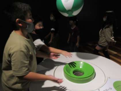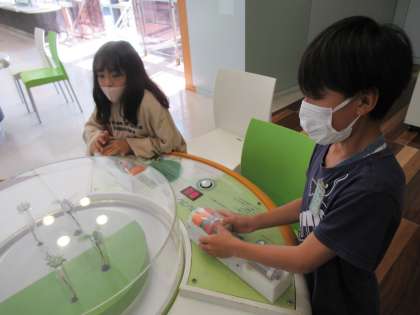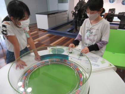 10月14日(木)、電流や磁石、風を使った実験装置では、友達と楽しく学ぶ様子がありました。学校では学ぶことができない、貴重な体験になりました。