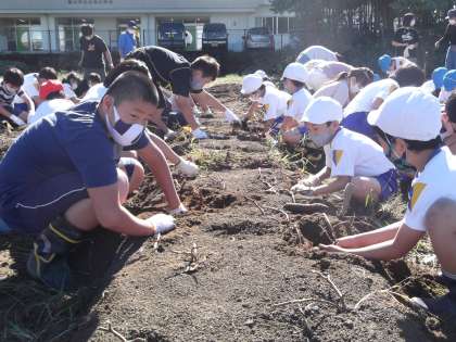 今日の2時間目は、2・5年生のサツマイモ堀りでした。大きなサツマイモを掘り出そうと奮闘している2年生を、優しくサポートする5年生の姿がとても頼もしかったです。