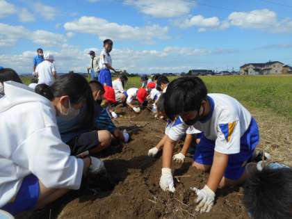 10月15日(金)、1年生には小学校生活で初めてのサツマイモ掘り、6年生にとっては小学校生活最後のサツマイモ掘りが行われました。1年生は、楽しく、一生懸命に。6年生は、1年生のお手伝いもしながら、楽しくできました。