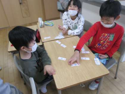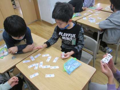 2年生は、いよいよ九九の学習がスタートしています。今日は、始めに学習した「5のだん」と「2のだん」の九九カードを使って「九九カルタ」をしました。楽しみながらも、正しく覚えていきたいですね。