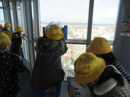 11月26日(金)、今日は校外学習で、「富山市役所」「富山県美術館」「富山県営武道館」「北陸電力エネルギー科学館ワンダーラボ」へ行ってきました。写真は、富山市役所での様子です。晴れていましたが、山は霧がかかっていてよく見えませんでした。でも、富山市を見渡し、たくさんの発見をした子供たちでした。