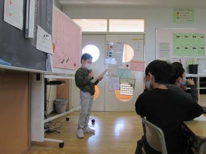 11月30日(火)、感謝の集いを行いました。畑のお世話をしてくださった地域ボランティアの方をお招きして、歌や手紙をプレゼントしたり、一緒にゲームをしたりしました。給食も、パーテーションをしてみんなで会話を楽しみながらいただきました。それぞれ、自分なりの形で感謝を伝えることができましたね。