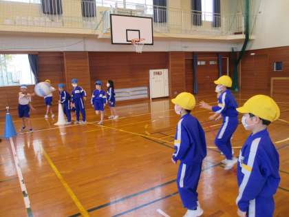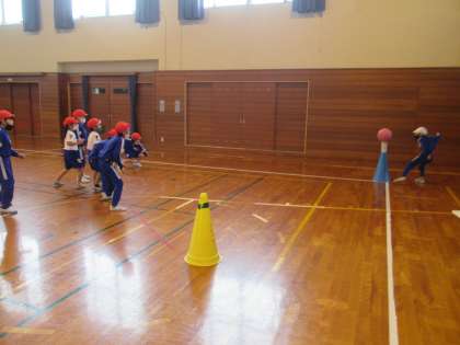 体育では、ベースボール型ゲーム「ねらって ポン」をしています。