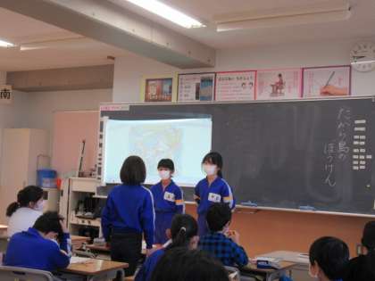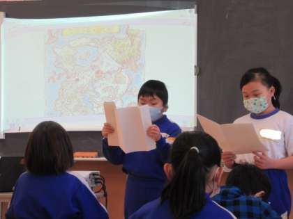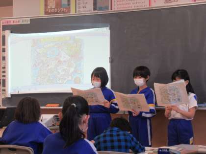 12月14日(火)、国語科「たから島のぼうけん」の学習をしています。物語を組み立てて、その組み立てたものにそって、物語を書きました。同じ地図を基にして書いていますが、一人一人の個性が溢れている素敵な物語がいくつもできあがりました。今日は、友達の発表を聞いて、それぞれの物語のよさを感じることもできました。