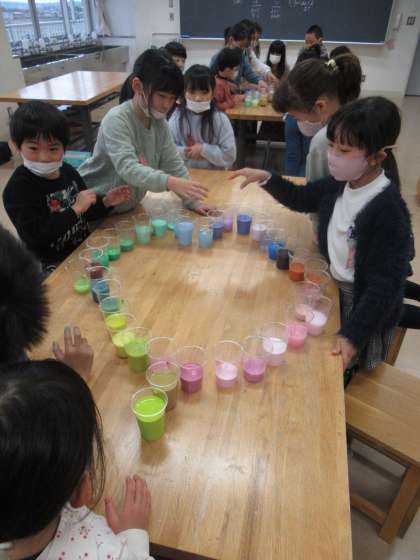 12月21日(火)1・2時間目、図画工作科「カラフルいろみず」の学習をしました。