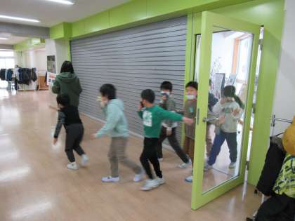 今月は防火シャッターを降ろしたときの避難の方法に重点を置いて避難訓練を行いました。密を避けるため、全校では避難、集合せずに、各学級ごとに体育館に避難しました。命を守る訓練に真剣に臨んでいました。