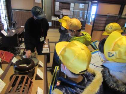 1月24日(月)、社会科と総合の学習として、3つの施設へ校外学習にいってきました。最初に、「富山市民俗民芸村」へ行ってきました。見学やお話を聞くことを通して、昔の人々のくらしや富山市のうつりかわりなどから、人々の工夫をたくさん感じられる機会になりました。