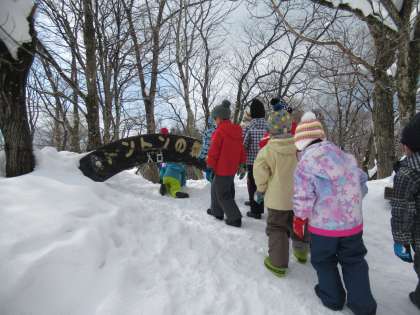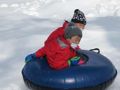 1年生は、チューブそり、尻滑り、トントンの森探検の順で活動を行いました。