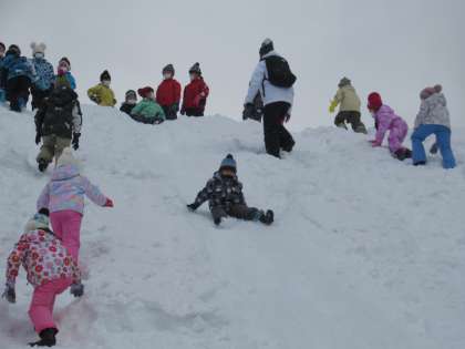 昨年よりも大きな斜面でしたが、物怖じせず、尻滑りする1年生の子供たちでした。思い切り冬を楽しむことができました。