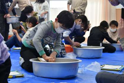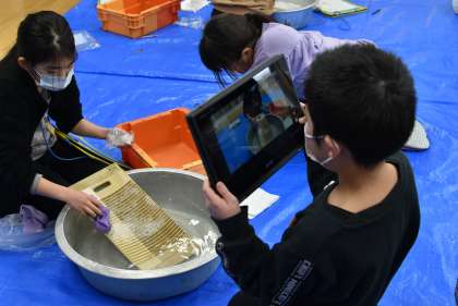 2月5日(土)、社会科の昔の道具のうつりかわりの学習として、昔の道具の1つの「洗濯板」を体験しました。今はスイッチ1つで洗いも乾燥もできますが、歴史をたどると、手で1つ1つ洗っている時代があったことを知りました。今日はゲストティーチャーとして太田小の助手の方に、洗濯板の使い方を教えてもらい、実際に自分のものを洗濯板で洗ってみました。子供たちの気付きを紹介します。