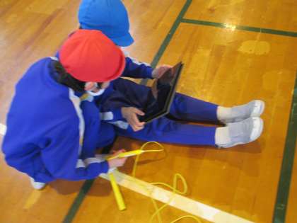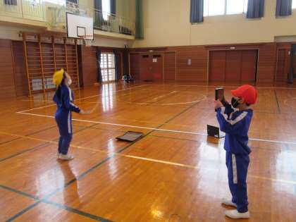 2月10日(木)、今日の体育の時間は、自分が縄跳びを跳んでいる姿をクロームブックで撮影しました。毎日二重跳びの練習に奮闘中の子は、「身体が少しくの字になっている!」「膝が曲がっていない!」などと気が付き、昼休みに意識しながら練習していました。記録会に向けて、どこまで成長するのか楽しみです。
