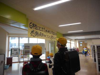 2月28日(月)、玄関に5年生が中心となって作成してくれた卒業を祝う週間のスローガンが掲示されていました。また、写真掲示板には6年生の思い出写真が流れていました。それぞれ、「すごいね」「もう少しで卒業なんだな」「懐かしいね」など、朝から卒業を意識できた一日でした。