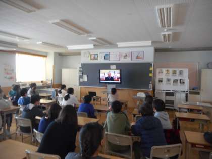 3月1日(火)、中学校紹介DVDを見ました。中学校の生徒会の方が作成した紹介映像を見て、中学校生活についてのイメージを膨らませました。学習や部活動だけでなく、中学校生活についても詳しく分かりました。中学校が楽しみになりましたね。