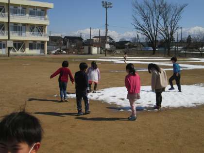 3月4日(金)、今日は久々の晴天だったため、生活科の時間にグラウンドに出ました。真冬との雪の質感の違いを楽しんだり、他の季節との景色の違いを感じたりしながら、リフレッシュすることができました。