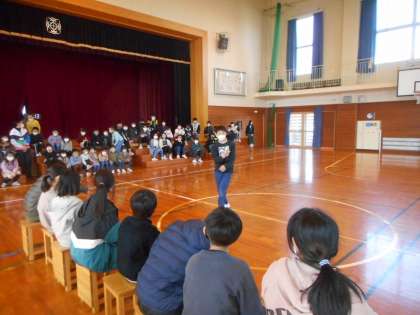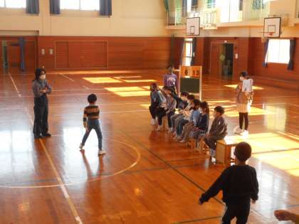 3月10日、今日は在校生プロジェクトチームが企画した、1年生とジェスチャーゲームを行いました。1年生の元気なジェスチャーに、6年生も負けじと楽しみました。1年生との思い出ができました。