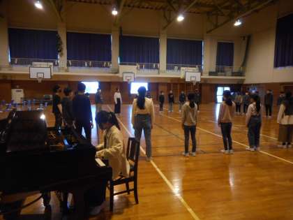 最後の卒業式練習(6年生) 公開日 2022/03/17 更新日 2022/03/17 6年生 3月17日(木)、いよいよ明日が卒業式本番となりました。最後の練習で、みんなの顔を見ながら歌うため、円になって合唱をしました。明日はこれまでの練習の成果を出し切りましょう。