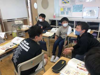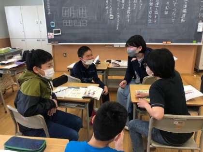 友達が考えた文章に話をつないでいく学習をしました。子供たちは、友達の文を聞いて、文章がつながるように考え、お話を作っていました。