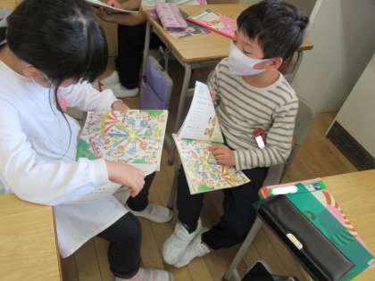 5月2日(月)、国語科「ともだちをさがそう」の学習で、音声から大事なことを聞き取る練習をしています。問題を出し合い、友達の話をよく聞いて、クイズに答えることができましたね。