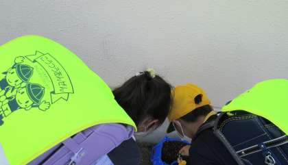 今朝は、何人か芽が出ていました。友達と芽の様子を観察していました。