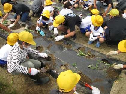 さつまいもの苗うえ(1・6年生)