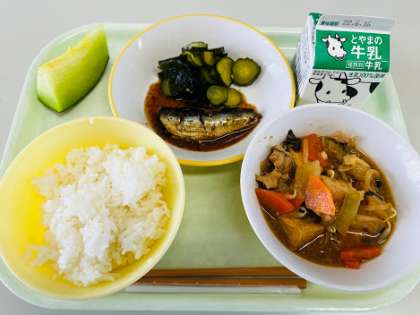 6月10日(金)の給食 公開日 2022/06/10 更新日 2022/06/10 給食室 本日の献立は、ごはん、いわしの土佐煮、酢の物、厚揚げの味噌炒め、メロン、牛乳 です。 いわしの土佐煮はかつお節の風味がして美味しかったです。 今年度初めてのメロンは、しっかり熟して甘かったです。