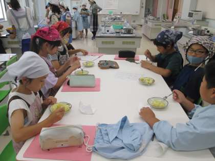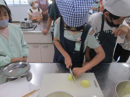 6月13日(月)、「ゆでる調理をしよう」の学習、続いては、ゆでいもを作りました。初めてじゃがいの皮をむいた子供も、じゃがいもの芽を上手にとったり、包丁をあまり使ったことがない子も、安全に気を付けて切ったりすることができました。また、実際に調理してみることで、青菜とのゆで方の違いを感じている子もいました。ぜひ、お家でもやってみましょう。