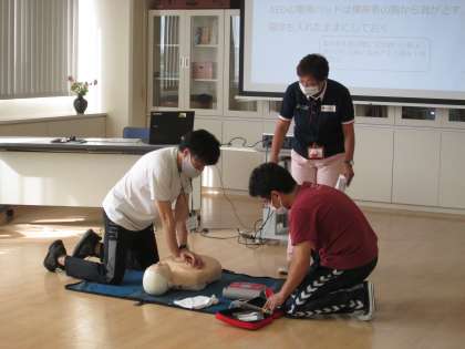 日本赤十字社富山県支部から講師を招き、AEDを用いた心肺蘇生法を教えていただきました。