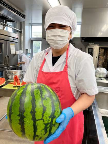 きょうのすいかは新潟産です。とても大きかったですよ。甘くていい味でした。
