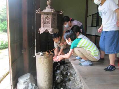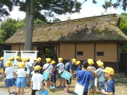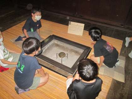 最後は、「浮田家」に行きました。なぜ国の重要文化財に指定されているのか、教えていただきました。木材や歪んだ窓ガラス等の特徴的な家のつくりや、今の家との違いを五感で感じることが出来ました。