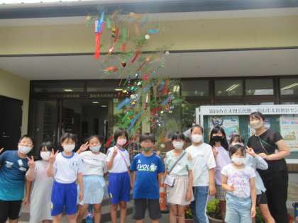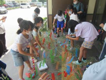 7月6日(水)、いちょうタイムに、5年生の希望者で地区センターの七夕飾りをしました。4〜6年生の願いが書かれた短冊を心を込めて飾ってきました。8月7日まで飾られているとのことです。ぜひ、子供たちの願い事をご覧になってください。