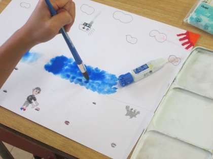 9月1日、図工の学習で「夏の思い出を描こう」に取り組みました。名残惜しい夏休みに思いをはせながら作品に向かう姿が印象的でした。