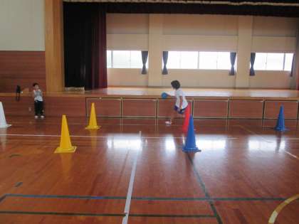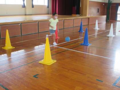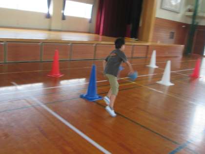 9月2日(金)、チャレンジスーパーちびっ子に出場する子どもたちの練習が始まっています。今日は、ジグザグドリブルの練習です。