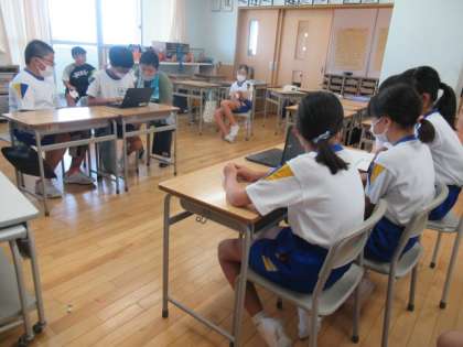 9月5日(月)、先週と2回にわたって、国語科「どちらを選びますか?」の学習において、対話の練習をしました。校長先生が犬か猫、どちらをペットとして飼おうか悩んでいるという設定のもと、犬を勧めるチームと猫を勧めるチームに分かれて対話をしました。どのチームも、とっておきの理由を3つ用意したり、質疑応答したりしながら、対話をすることができました。校長先生役の児童は、友達の対話を聞いて、しっかりと理由をもって判断することができました。