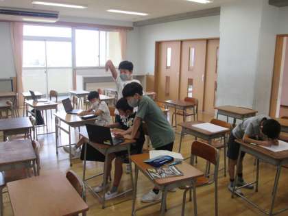宿泊学習にむけて、お笑い係の子供たちが、ネタつくりにはげんでくれています!
