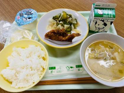 9月21日(水)の給食 公開日 2022/09/21 更新日 2022/09/21 給食室 本日の献立は、ごはん、豚肉の竜田揚げ、かぶの色どり、呉汁、ヨーグルト、冷凍パイン、牛乳です。 呉汁は古くから日本各地で郷土料理として親しまれてきました。 大豆と味噌の組み合わせが絶妙で栄養満点のみそ汁です。