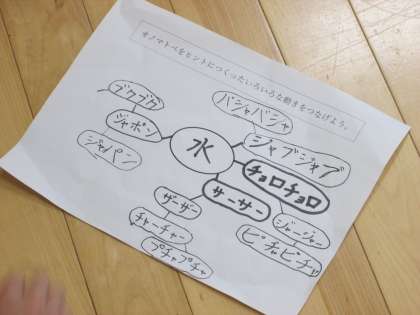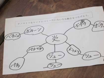 10月14日(金)、表現運動の学習をしました。今日はチームに別れてオノマトペマップを作成し実際に動いてみました。最後には、見せ合い、共演をします。