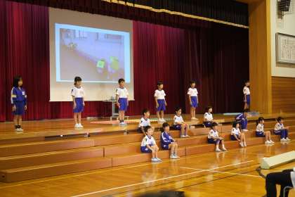 発表が終わった後の子供たちの笑顔から、「がんばってできた!」という気持ちが伝わってきて、うれしく思いました。