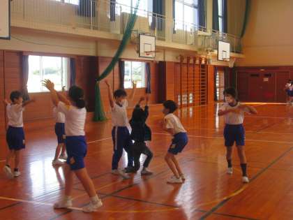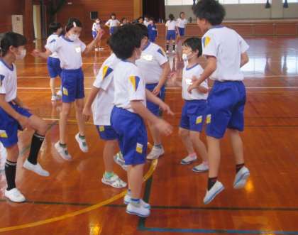 最後はチーム同士で共演をしました。即興でやることの難しさ、楽しさを感じられたのではないでしょうか。3学期の表現運動もみんなで楽しみましょう!