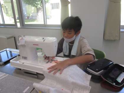 家庭科では「トートバッグづくり」に取り組んでいます。久しぶりにミシンを使いましたが、これまでの学習を生かし、手際よくミシンを使うことができました。友達と教え合ったり、協力したりして、しっかりと縫うことができました。完成が楽しみです。