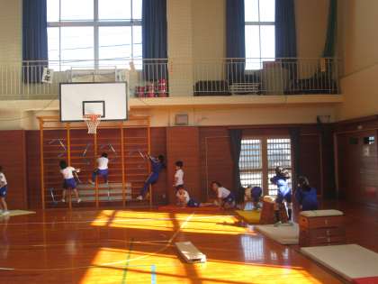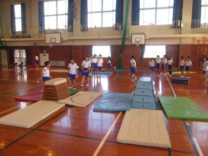 「パルクールを模倣した体育館1周アスレチックエリア」と「通常の跳び箱エリア」この2つのエリアで楽しみながら身体能力の向上、技能の向上を目指しています。