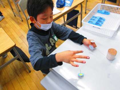 11月4日(金)、算数の学習では、こまを作りました。コンパスを使って円や模様をかき、好きな色を塗りました。1学期の国語で学習した「色変わりごま」を作っている子が多く、学習したことを生かそうとしている姿に感心しました。