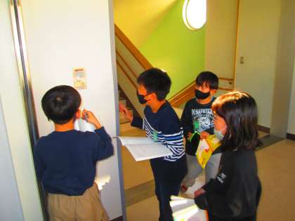 11月10日(木)、社会科は今日から「くらしを守る」の学習が始まりました。万が一学校で火事が起きた場合の工夫はどのようなものがあるのか、手分けして校内を調べました。